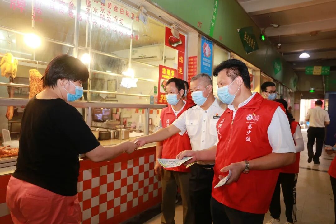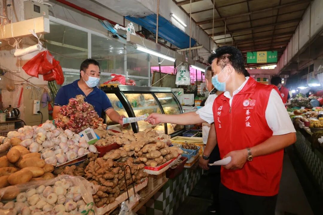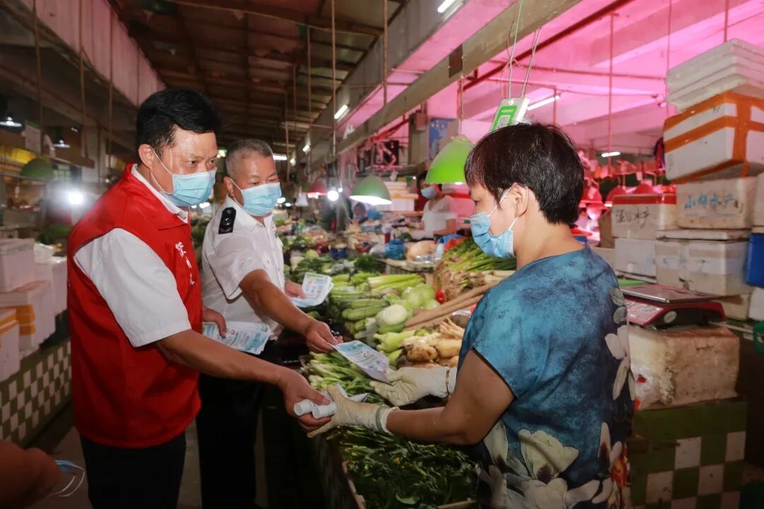为深入贯彻习近平总书记重要指示精神,落实好党中央国务院和省、市关于新型冠状病毒肺炎防控工作要求,坚决打赢疫情防控阻击战,保障市民群众生命财产安全,帮扶市场主体持续健康发展,6月24日上午,在盐田区个私协会会长邓小琼的带领下,市协会副秘书长、党委办主任朱文养、盐田区个体党总支部分党员以及沙头角市场监管所所长李卫文等分为两队,分别到田心市场、广北市场、田东市场开展疫情防控知识和市场监管局支持个体工商户复工复产扶持政策的宣传。
