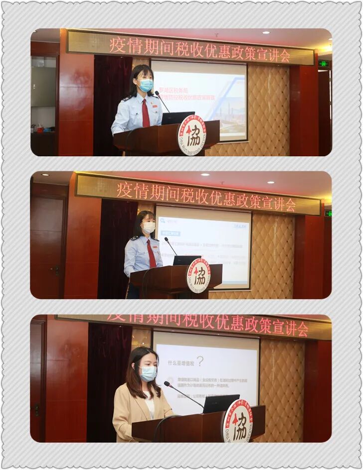 会上,3名授课老师对协会全体员工进行培训,解读税收优惠政策、个人所得税年度汇算清缴实操、电子税务局实操等知识。据介绍,面对新型冠状病毒肺炎疫情防控的严峻形势,财税部门联合发布系列公告,明确自2020年1月1日起实施一系列聚焦疫情防控关键领域和重点行业的税收优惠政策,助力打赢疫情防控阻击战。