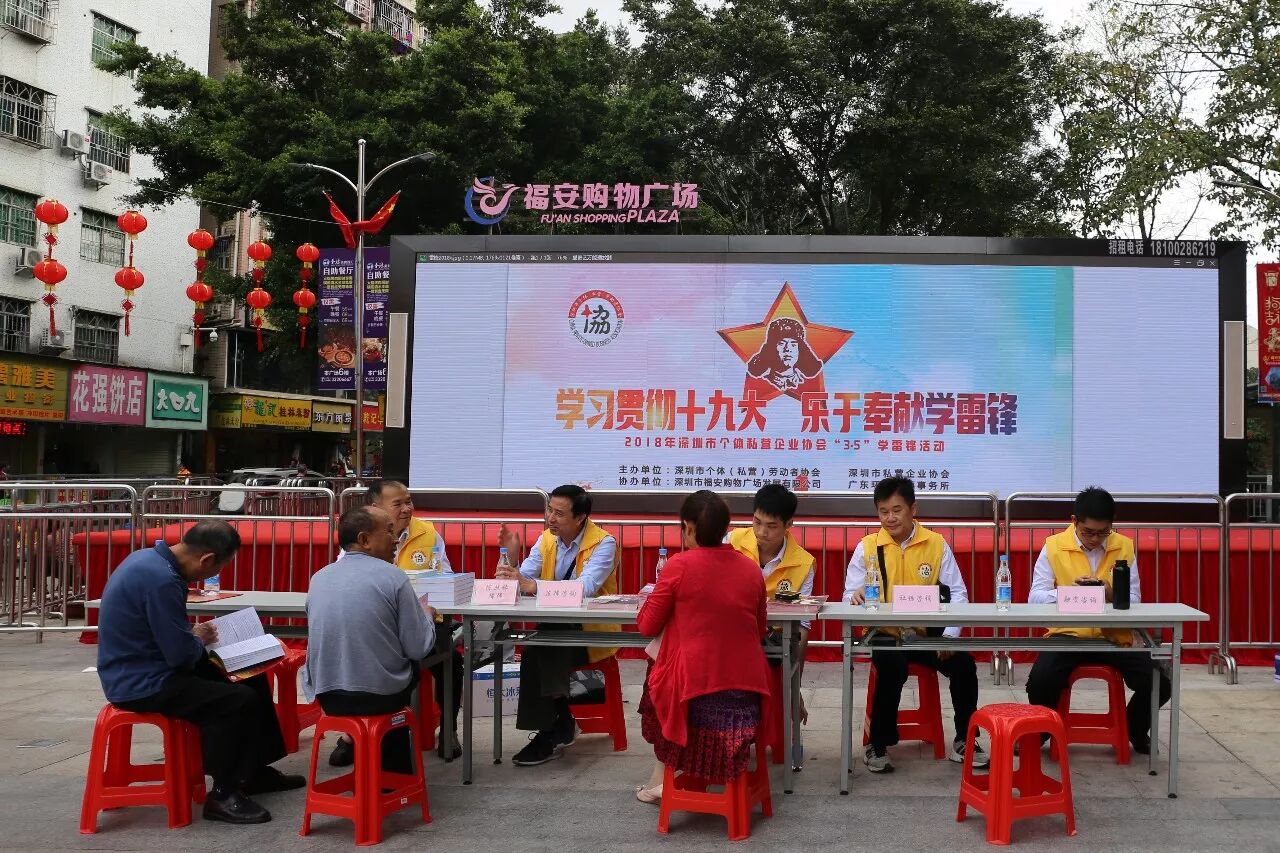 三月春风暖神州,雷锋精神鼓人心。3月5日,在毛主席题写“向雷锋同志学习”55周年之际,迎来了市个体私营企业协会第28个学雷锋活动日。这是市个私协会全面学习贯彻党的十九大精神的开局之年,同时又是进一步落实习近平总书记贺信精神的第一场义务活动。活动当天,深圳市个体(私营)劳动者协会、深圳市私营企业协会联合深圳市福安购物广场发展有限公司、广东环鼎律师事务所以及连续两届被市个体(私营)劳动者协会评为“深圳市红旗文明诚信商户”的景田贝诗美发名店,在东晓街道金稻田路福安购物广场开展了以“学习贯彻十九大乐于奉献学雷锋”为主题的“3·5”学雷锋义务服务活动。