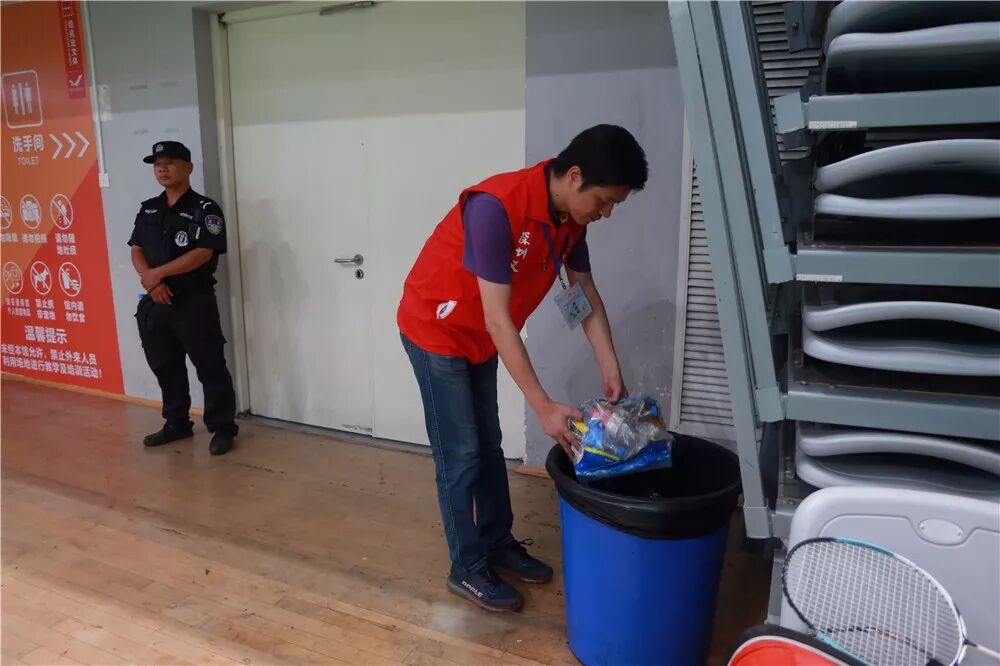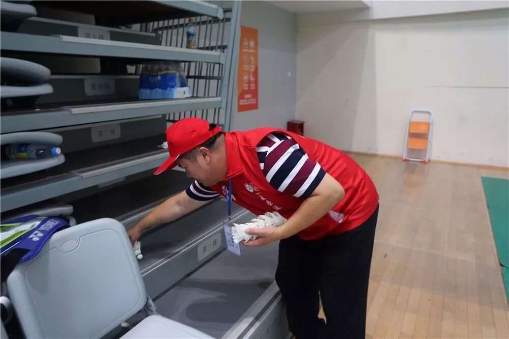 当傍晚兴致盎然的观众们悉数散去,他们拖着疲惫的身躯,检查着场馆每个角落的卫生,将遗留下来的矿泉水瓶、纸巾片清理干净,还第二天的比赛一个清洁整齐的环境。